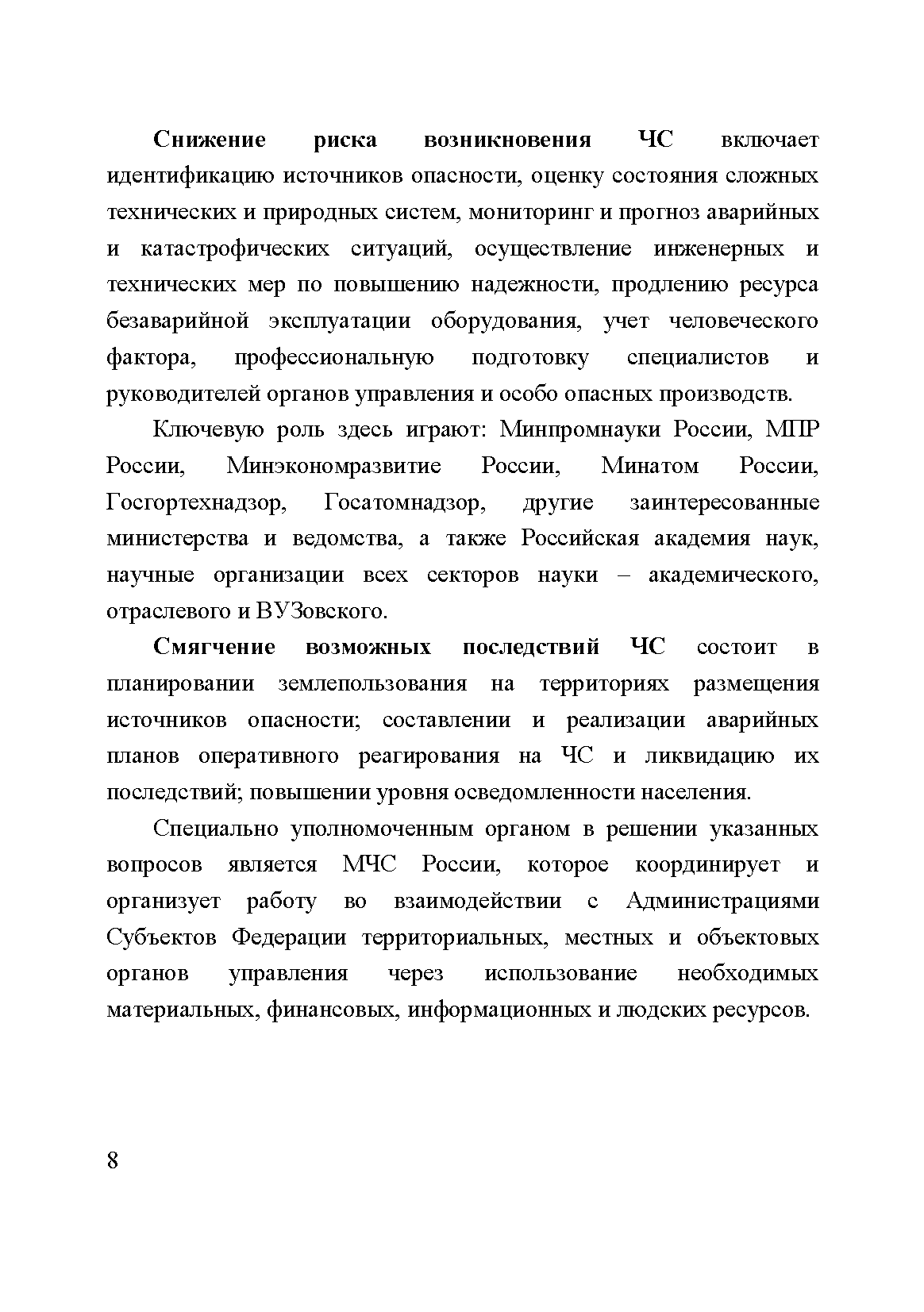Смягчение возможных последствий ЧС состоит в планировании землепользования на территориях размещения источников опасности; составлении и реализации аварийных планов оперативного реагирования на ЧС и ликвидацию их последствий; повышении уровня осведомленности населения.