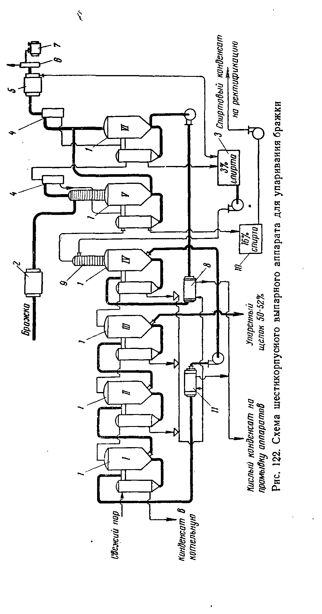 Схема шестикорпусиого выпарного аппарата для упаривания бражки