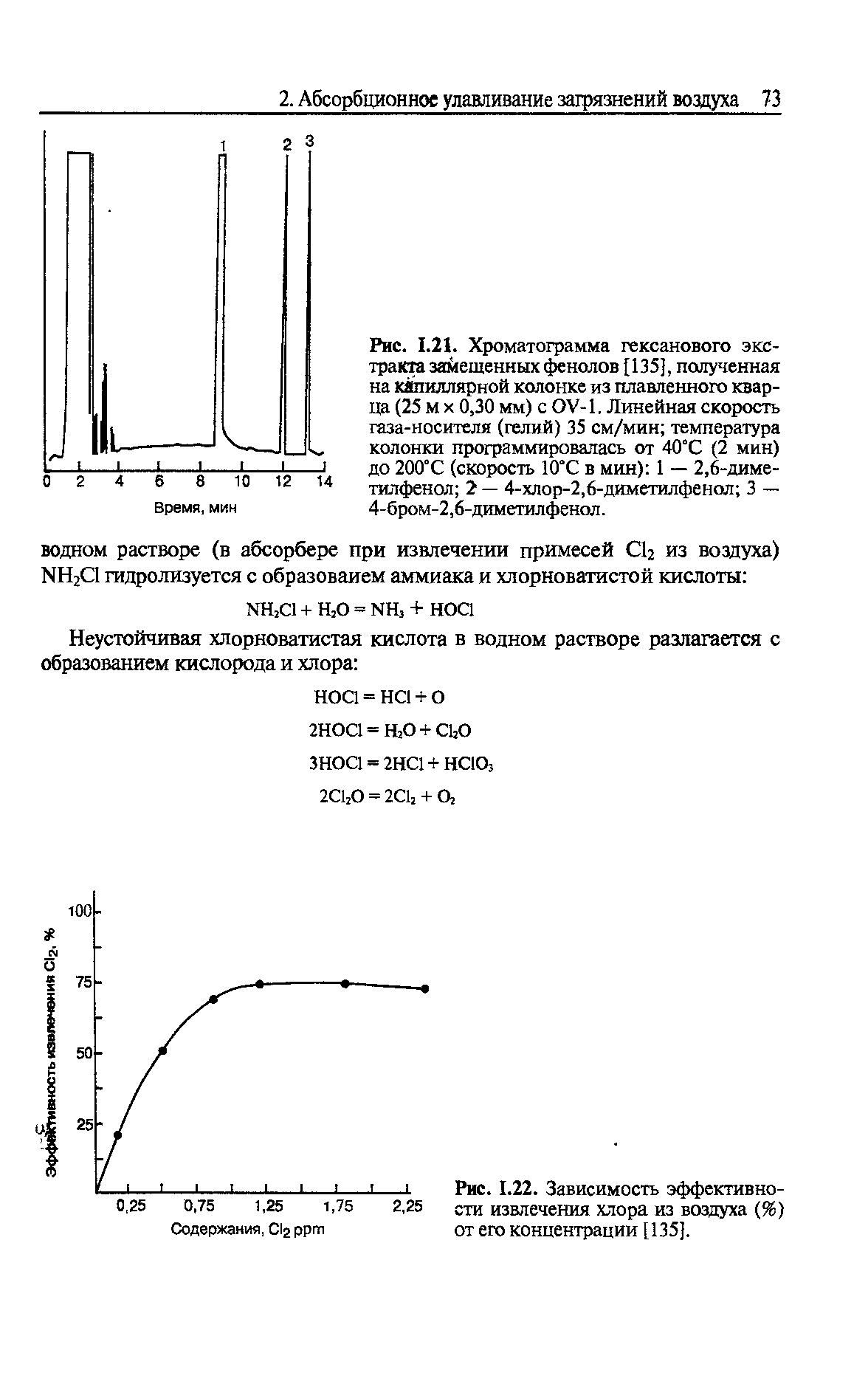 ![Хроматограмма гексанового экстракта запрещенных фенолов [135], полученная на капиллярной колонке из плавленного кварца (25 м х 0,30 мм) с OV-1. Линейная скорость газа-носителя (гелий) 35 см/мин; температура колонки программировалась от 40°С (2 мин) до 200°С (скорость 10вС в мин)](/static/pngsmall/820685050.png)