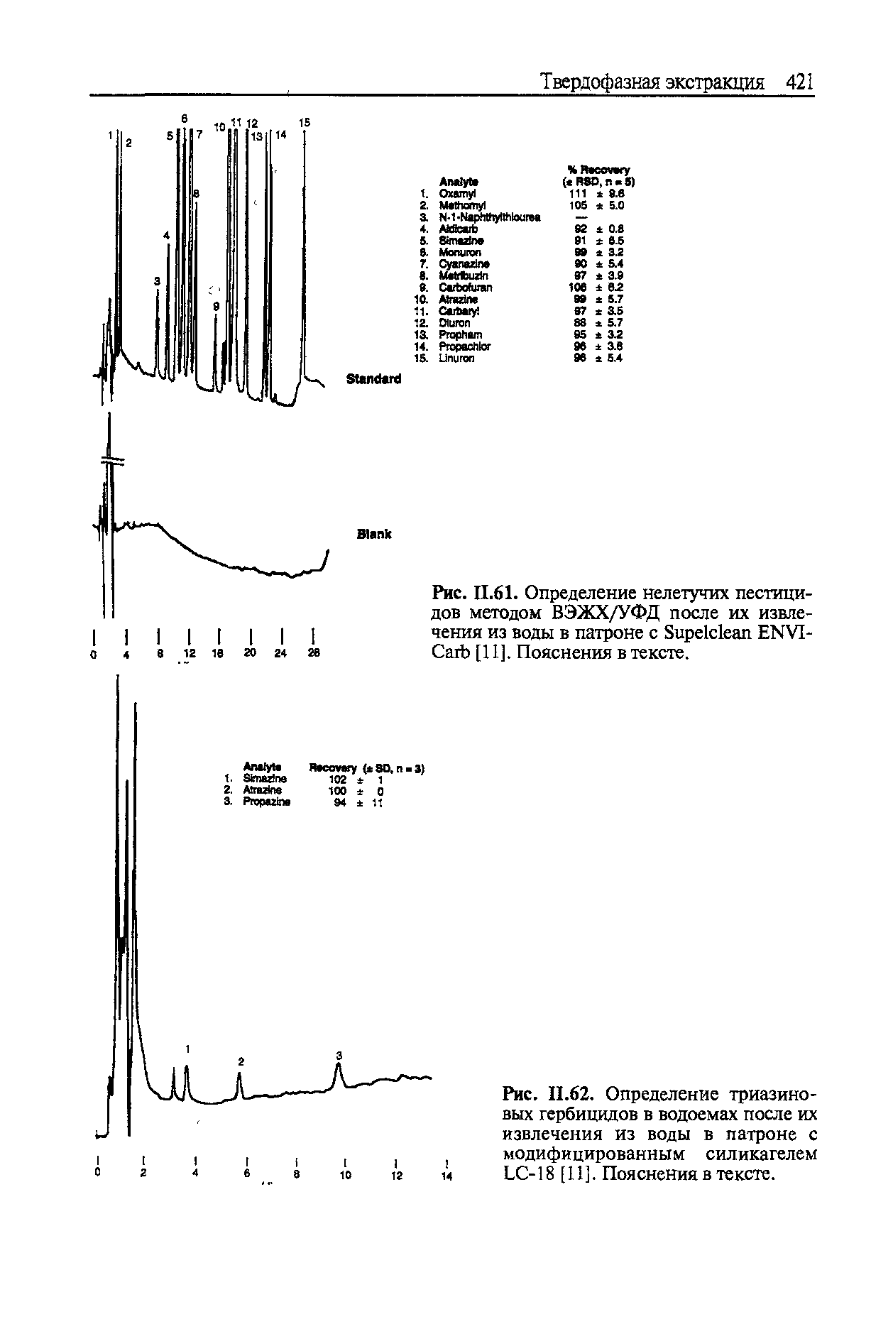 Определение триазино-вых гербицидов в водоемах после их извлечения из воды в патроне с модифицированным силикагелем ЬС-18 [И]. Пояснения в тексте.