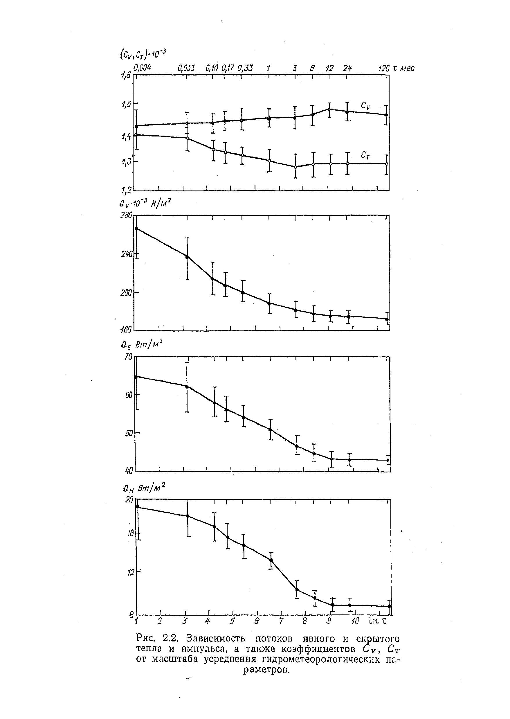 Изменения характеристик энергообмена океана и атмосферы при различных масштабах осреднения гидрометеорологических параметров в осреднении за .32 года в диапазонах масштабов 3— 720 ч и 1—240 мес показаны на рис. 2.2, а в табл. 2.4 приведены соотношения потоков тепла влаги и количества движения при различных масштабах временного осреднения (2.15).
