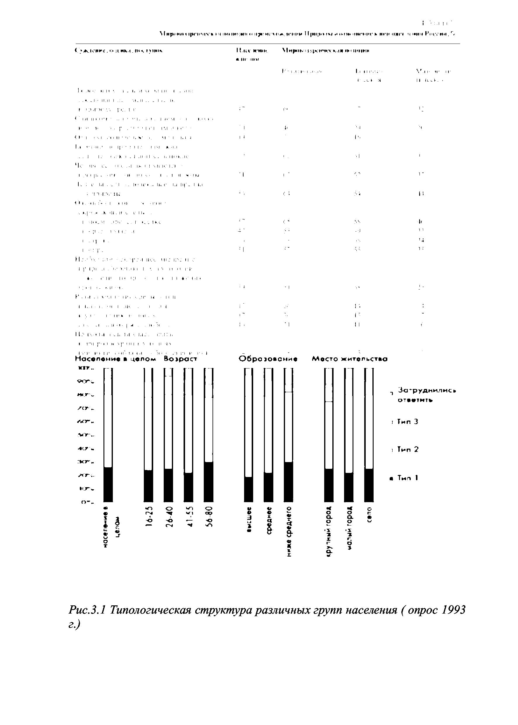 Типологическая структура различных групп населения ( опрос 1993 г.)