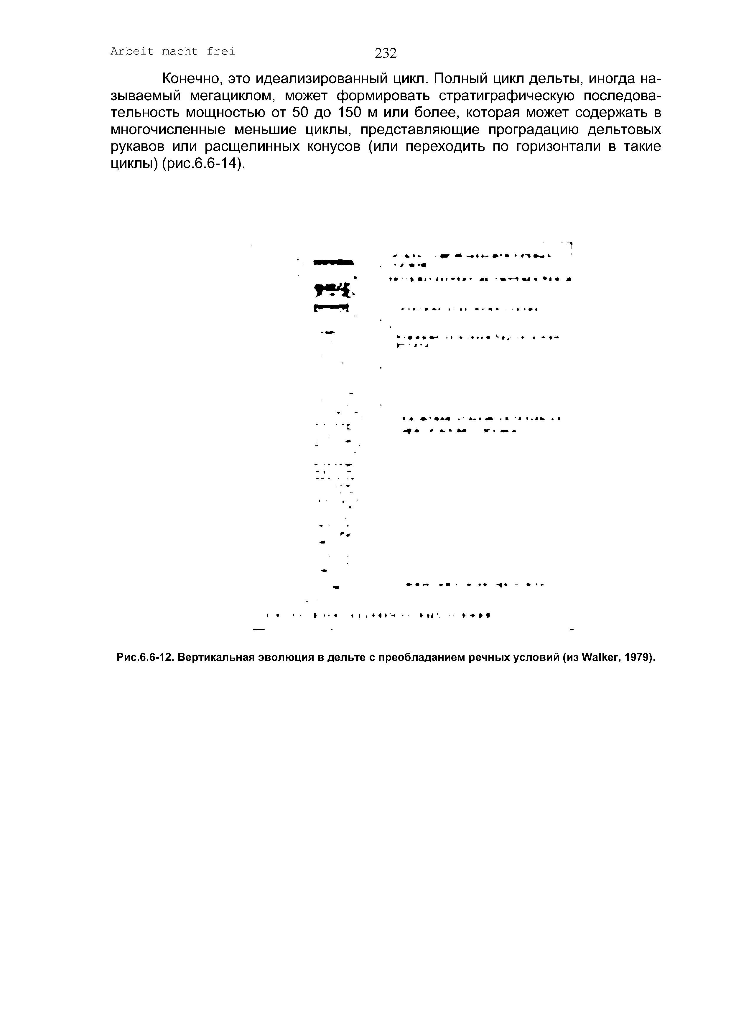Дельты с преобладанием речных условий формируют крупные циклические отложения (рис.6.6-11). Литология, мощность и эволюция размера зерен показаны на рис.6.6-12.