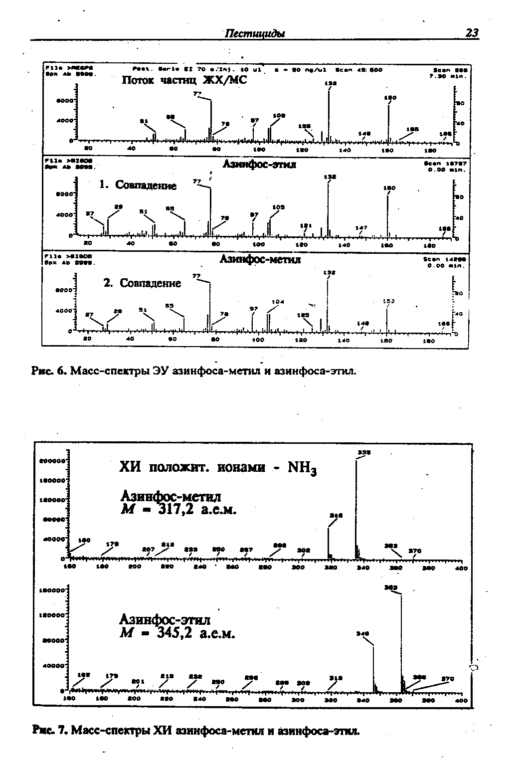 Масс-спектры ЭУ азинфоса-метил и азинфоса-этил.