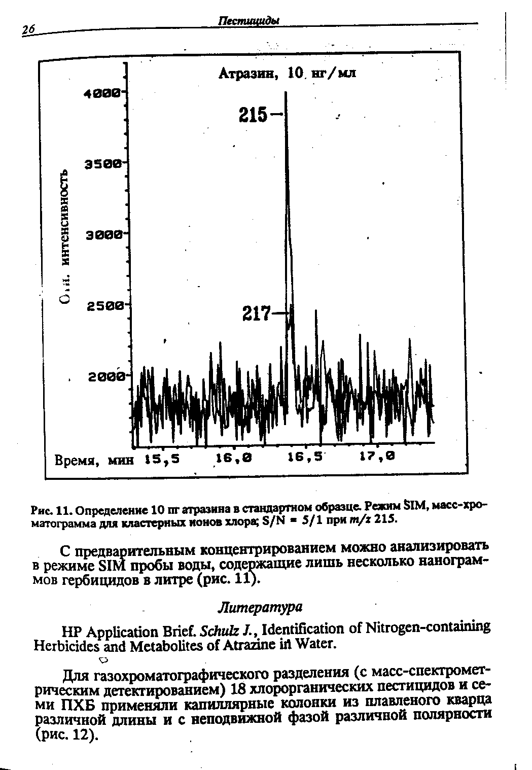 Определение 10 пг отразила в стандартном образце. Режим SIM, масс-хро-матограмма для кластерных ионов хлора; S/N « 5/1 при т/х 215.