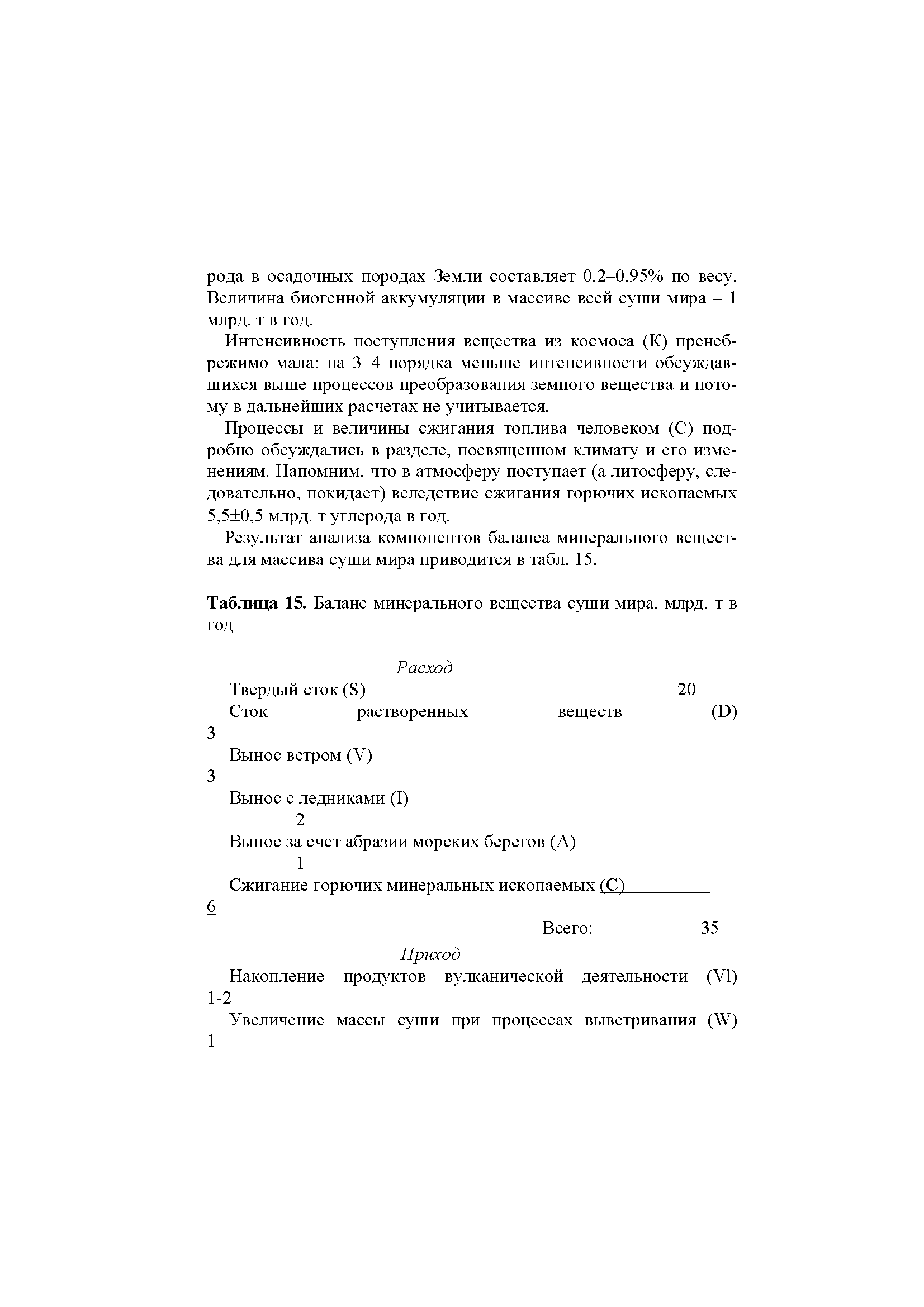Результат анализа компонентов баланса минерального вещества для массива суши мира приводится в табл. 15.